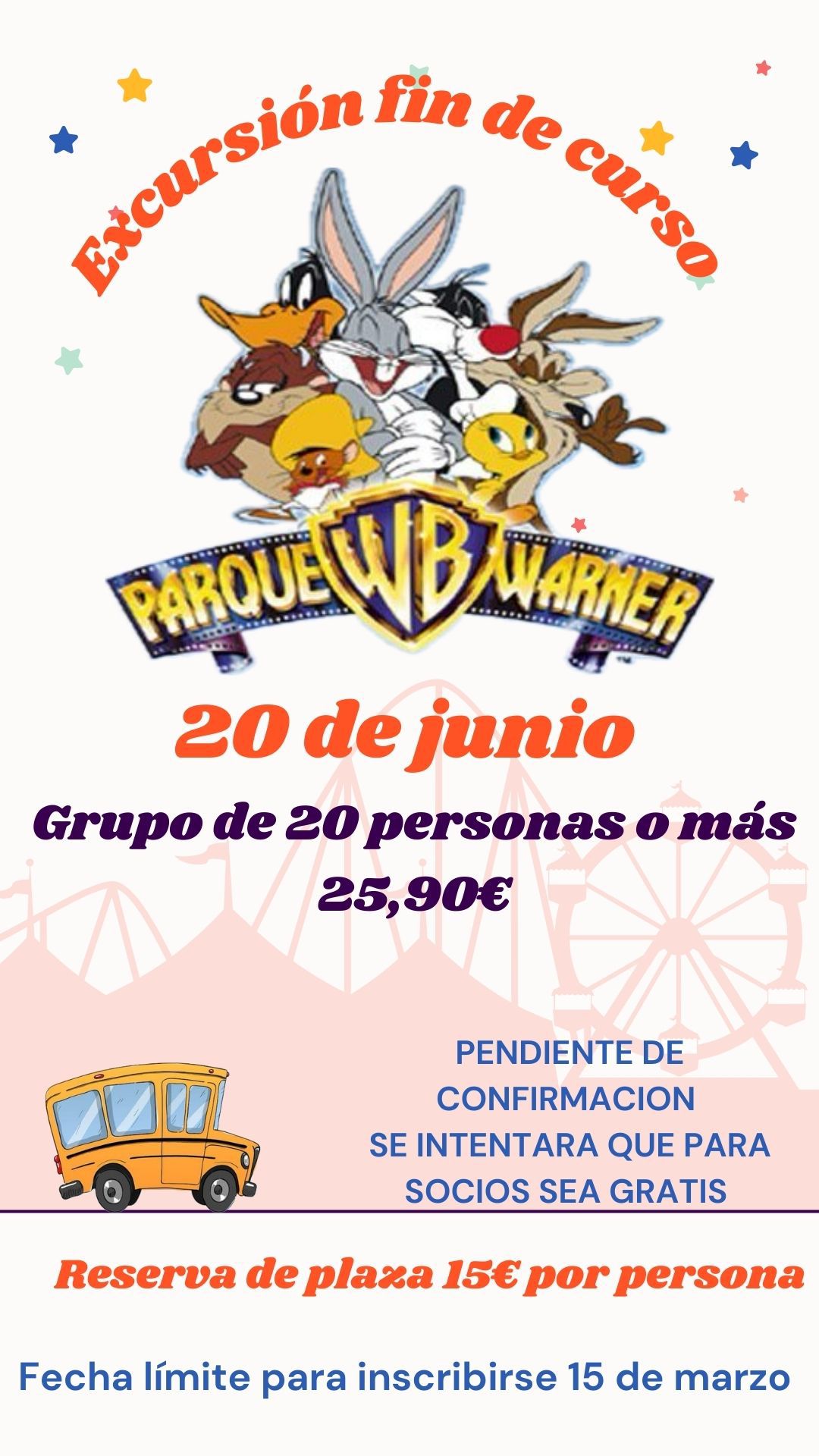 Excursión Fin de Curso - Parque Warner Madrid cantidad
